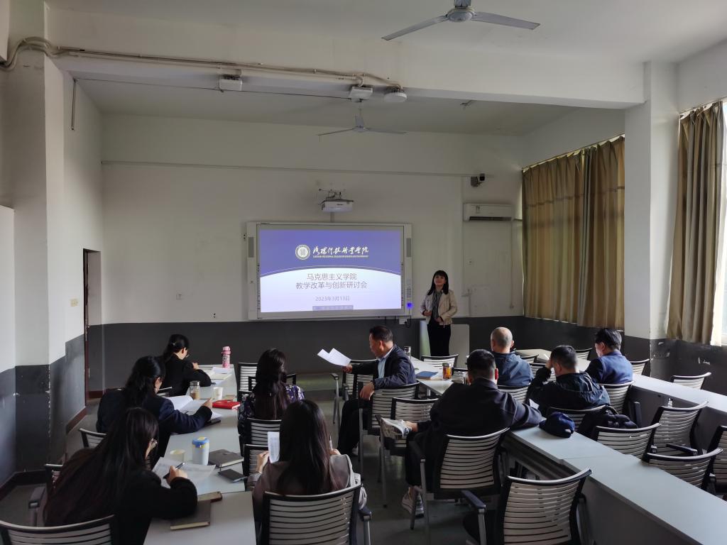 为修订2023版人才培养方案,提升育人成效,2023年3月14日教务处组织各二级海立方娱乐城 开展了以马克思主义海立方娱乐城 (通识教育海立方娱乐城 )公共基础课教学改革与创新为主题的研讨会,会议由韩全力校长主持。