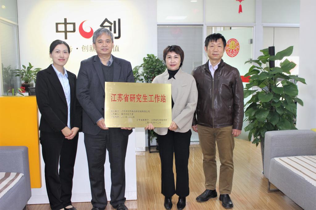 的办学历史、师资队伍、专业建设、学科建设和研究生培养情况,中创公司总经理冯学悟代表中创公司致欢迎词,中创公司副总经理谭小艳介绍了中创公司的相关情况。中创公司是中国统计学会第十届理事会理事单位、江苏省统计调查服务行业协会(SSAJS)首批副会长单位、中国信息协会市场研究业分会(CMRA)会员单位,已经在苏皖市场运作近二十年,构建了政府公共服务研究-产业与社会发展研究-渠道研究的产品线,可以为客户提供一体化的咨询服务,是苏皖地区规模较大的调研咨询机构。挂牌仪式结束以后,校企双方进行了亲切的业务交流,对如何充分利用好省级研究生工作站这一平台开展好有关工作交换了意见,气氛热烈友好,工作成效显著。
