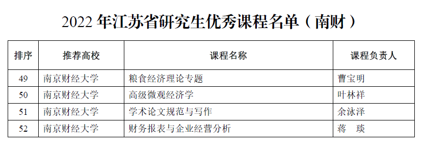 研究生课程《高级微观经济学》被评为2022年江苏省研究生优秀课程
