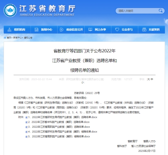 日前,江苏教育厅、省委人才办、省科技厅、省人力资源社会保障厅印发《省教育厅等四部门关于公布2022年江苏省产业教授(兼职)选聘名单和续聘名单的通知》(苏教研函〔2022〕25号),海立方娱乐城