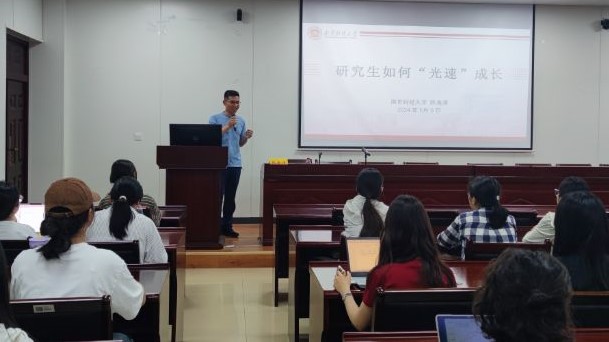 讲座伊始,陈海清老师与研究生积极互动,了解同学们在专业学习中面临的困难及困惑。陈老师强调说研究生课程体系的知识专业性很强,需要同学们持续深入地学习以全面地提高专业综合能力和素质。如何能够有效地利用时间,实现“光速成长”?陈老师给出建议,即“拒绝抱怨、明确目标、精准发力”。