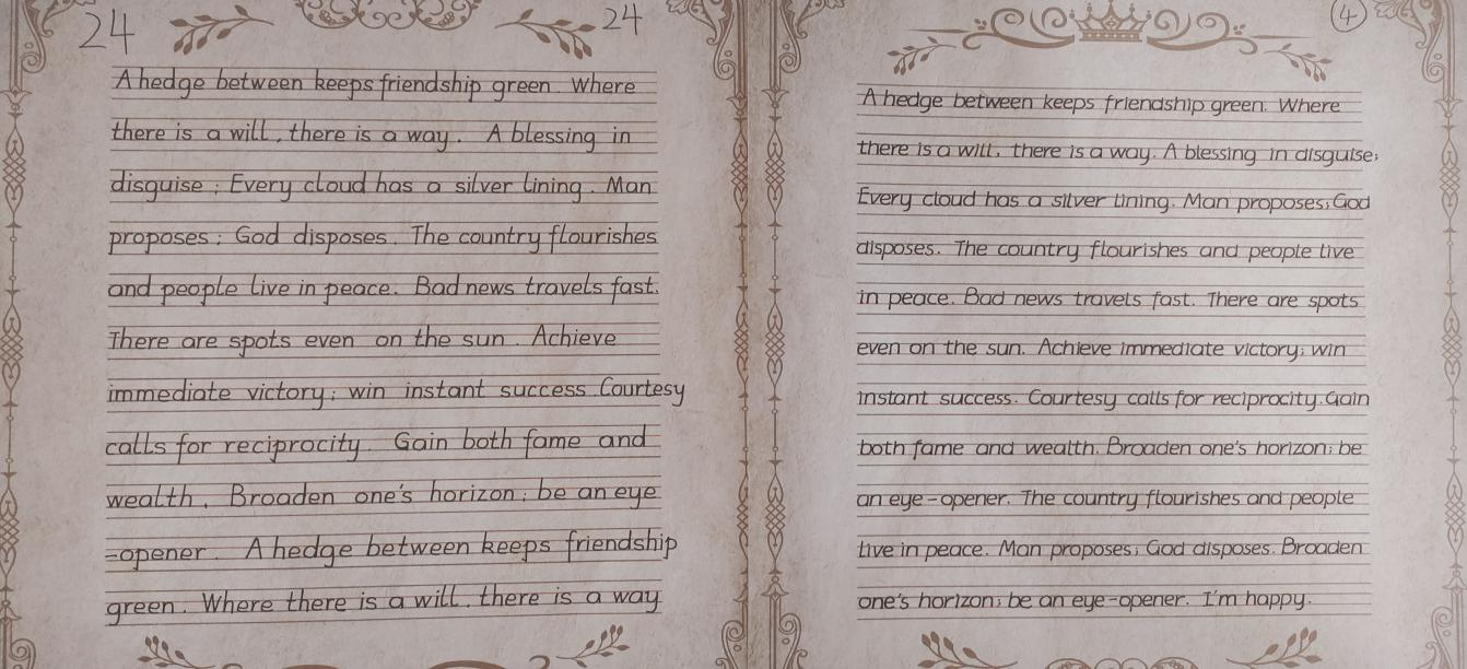于5月23日在匠心楼325组织英语书写大赛,本次英语书写大赛旨在将名言警句同英语融合起来,让同学们在字字落实、句句细品的名言之中体悟语言的魅力,同时在下笔的斟酌中,提升书写意识和书写水平。