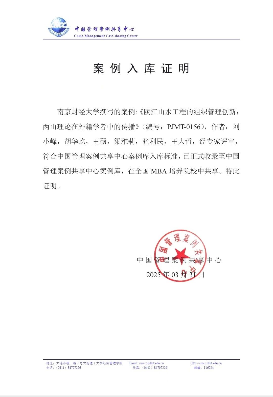 刘小峰教授团队撰写的案例《瓯江山水工程的组织管理创新:两山理论在外籍学者中的传播》,经中国管理案例共享中心严格评审后成功入库。此次教学案例的入选,标志着海立方娱乐城