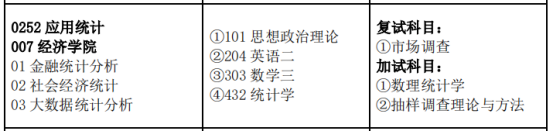 按照一级学科招生,硕士研究生招生学科(专业)共4个:理论经济学(学硕)、统计学(学硕)、应用经济学(数量经济学方向,学硕)、应用统计(专硕)。