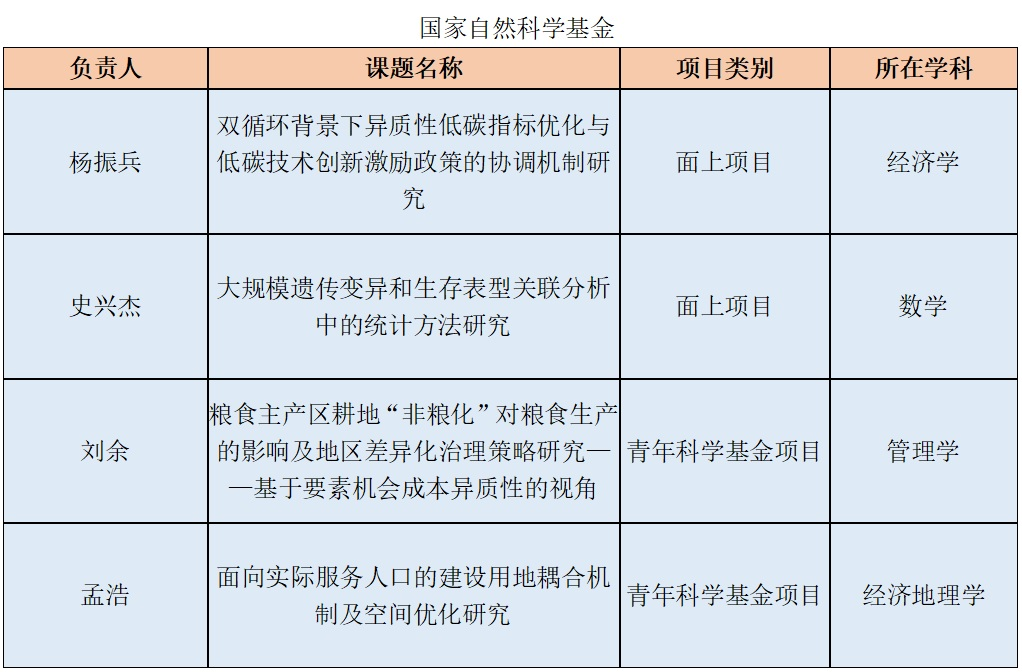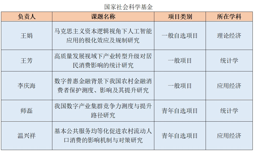 教师获得国家社科基金和国家自科基金9项,其中,国家社会科学基金立项5项,国家自然科学基金立项4项。