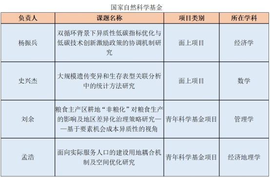 教师又获得国家社科基金和国家自科基金9项,其中,国家社会科学基金立项5项,国家自然科学基金立项4项。
