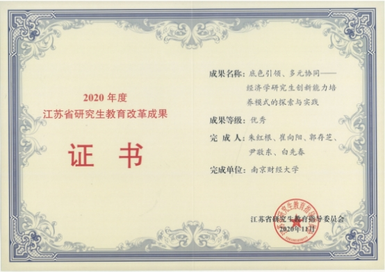 获得江苏省研究生教育改革成果优秀奖