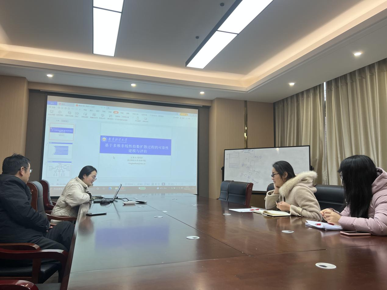 段凤君老师汇报的题目是《基于多维非线性指数扩散过程的可靠性建模与评估》。本课题的背景意义是基于现实中的退化现象大多呈现出复杂的非线性趋势,因此拟构建合理的非线性指数扩散过程退化模型更好对其进行描述。此外,随着科学技术和工程技术的迅速发展,现代工业产品的失效机理日趋复杂,很多高质量长寿命产品通常具有多个相互关联的性能退化指标,因而考虑将一维退化模型推广至多维情形,并考虑构建相应的加速退化模型。