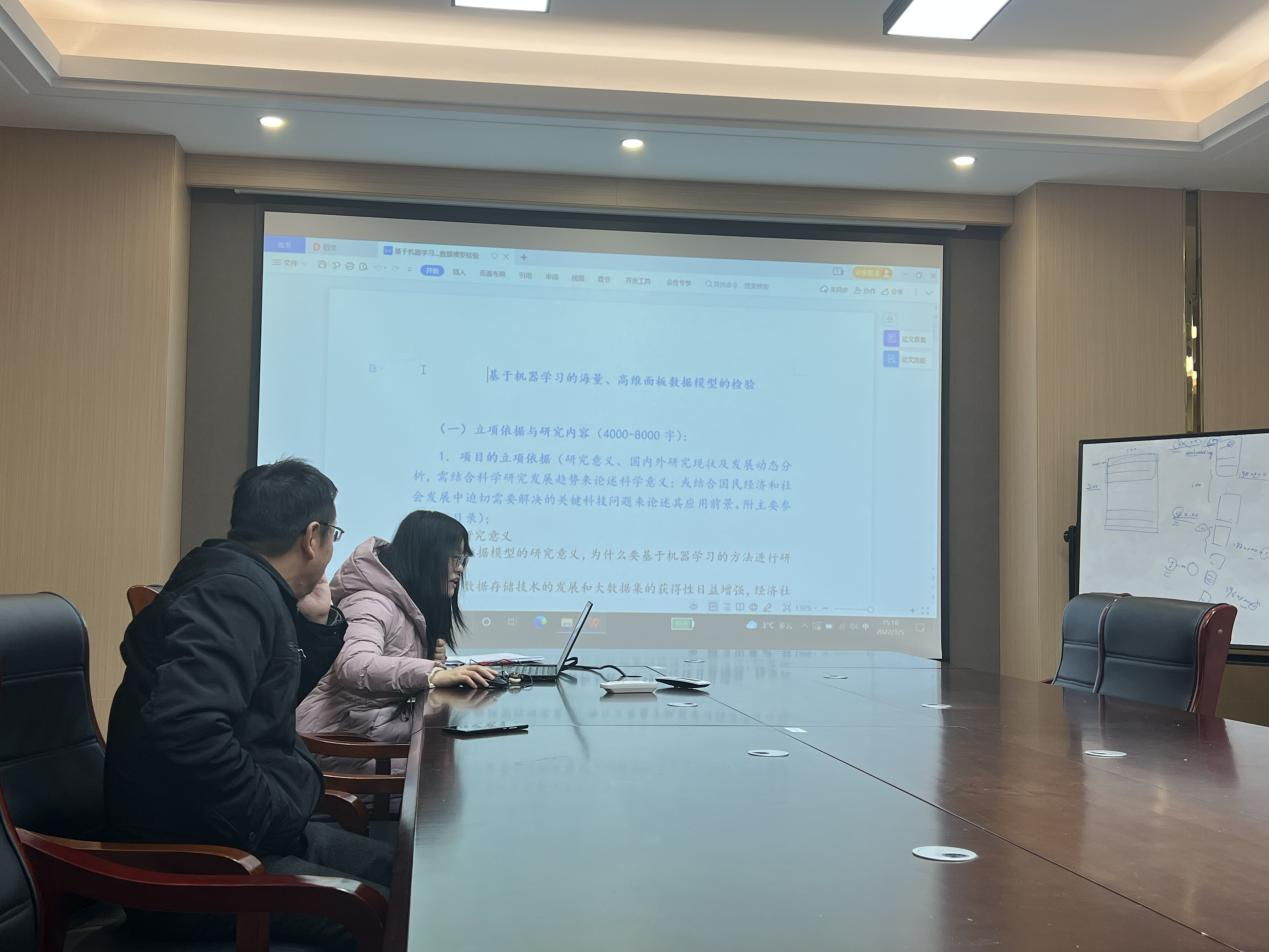 陈冉冉老师汇报的题目是《基于机器学习的海量高维面板数据模型的检验》。陈老师针对该题目主要从选题的意义,国内外研究现状,以及研究内容方面做了简单的汇报。由于传统的统计推断方法依赖于严谨的数理推导,面向模型,重视模型的解释能力,然而其面对复杂高维数据具有局限性;机器学习理论依靠强大的自主学习和模式识别的能力,能够有效解决高维问题,但其可解释性差;统计机器学习结合两者优点,成为处理高维海量数据的有力工具。