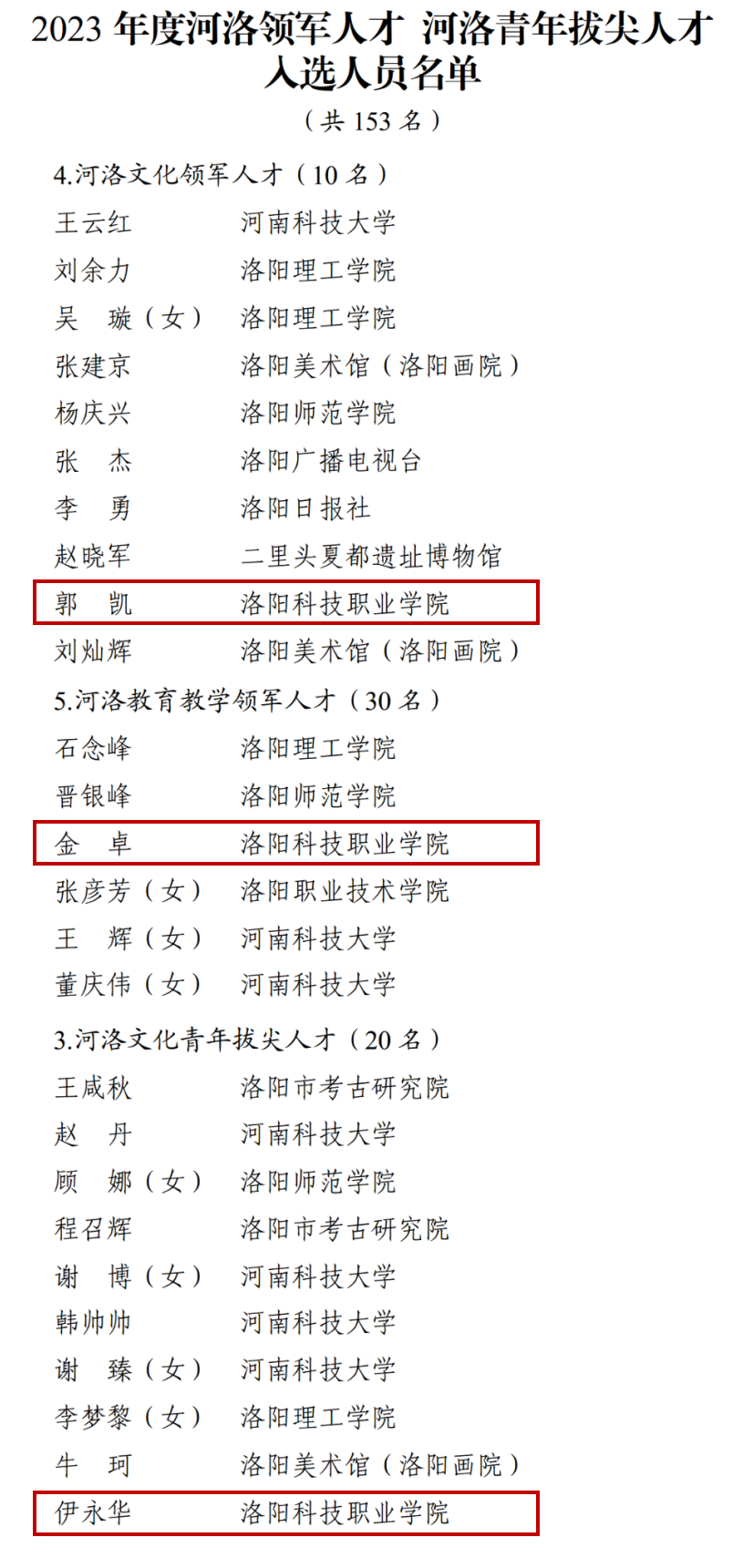 近日,洛阳市人才工作领导小组办公室公布2023年度河洛领军人才、河洛青年拔尖人才名单。海立方娱乐城