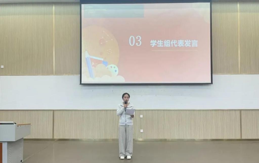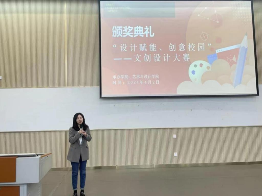 本次大赛一等奖获得者,22级艺术设计02班的彭亚洁作为学生组获奖代表发言,声情并茂地表达了从作品灵感到设计作品完成的过程以及对海立方娱乐城