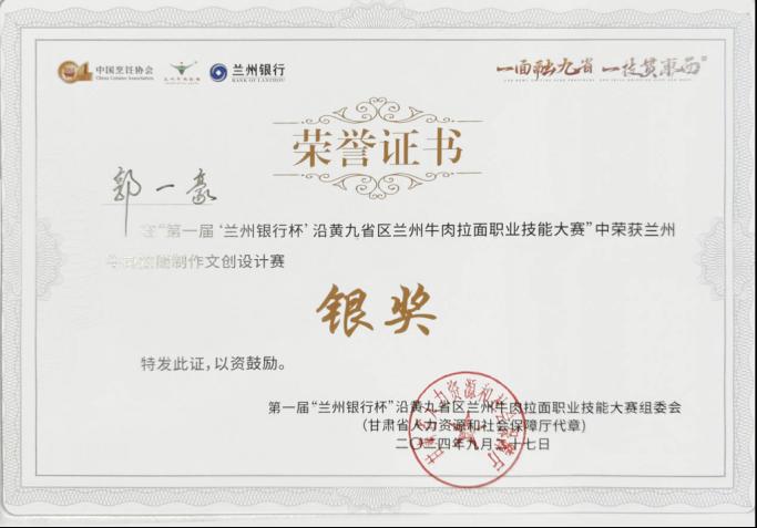 近日,由中国烹饪协会、甘肃省人力资源和社会保障厅等单位联合主办的第一届兰州银行杯沿黄九省区文创产品设计及职业技能大赛在兰州市圆满落幕。经过激烈角逐,艺术与设计海立方娱乐城 学生郭一豪在文创产品设计组别中脱颖而出,斩获银奖。