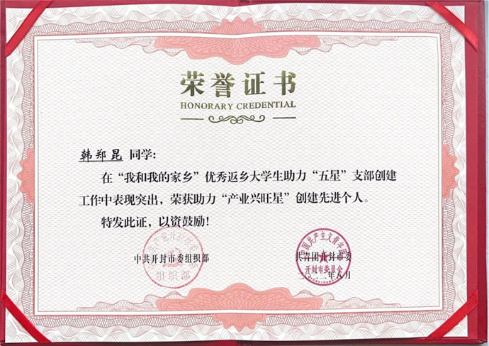 韩郑昆敢于担当、勇于奋斗