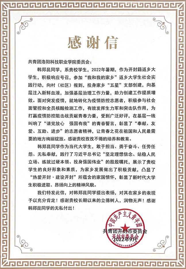 韩郑昆利用暑期时间服务家乡,服务社会