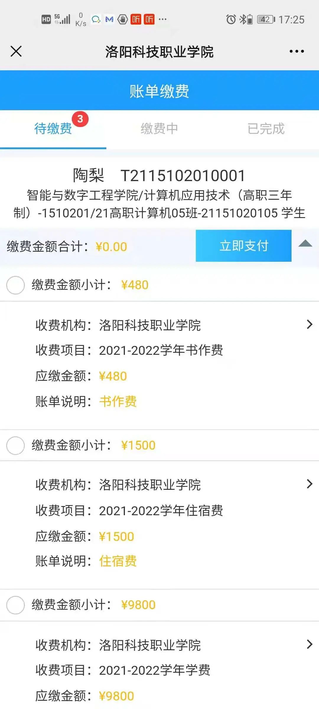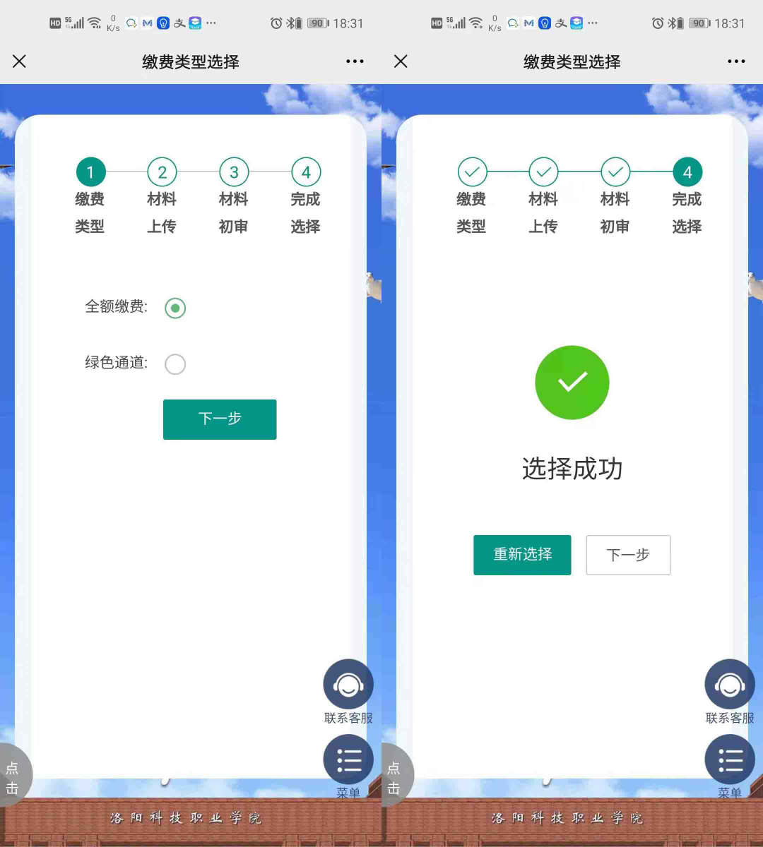 缴费类型分“全额缴费”和“绿色通道”两种方式进行缴纳费用(默认全额缴费)。