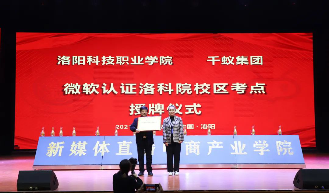 微软公司河南运营中心主任黄贻彬教授为微软国际认证洛科院校区考点授牌。微软国际认证,是微软公司设立的全球性技术认证,证书被全世界120多个国家认可。微软国际认证走进洛科,将为学生们提供更多的学习资源。