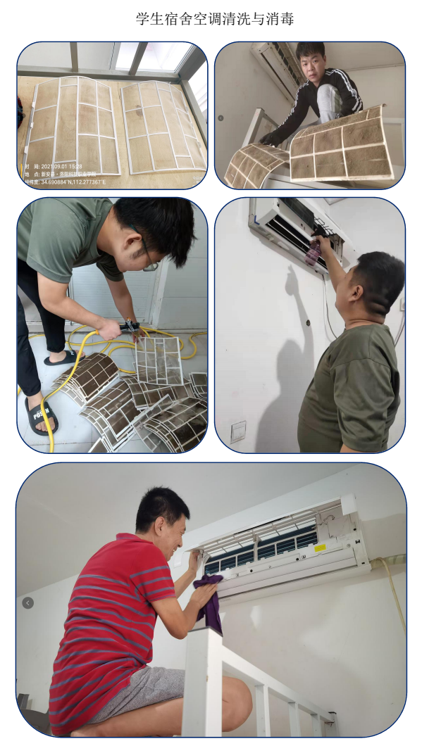 公寓中心的工作人员不仅全部进行了通风换气、消毒消杀,连空调滤网也不放过,每一片都抽出清洗消毒、擦拭风干。让大家可以放心入住,无后顾之忧!