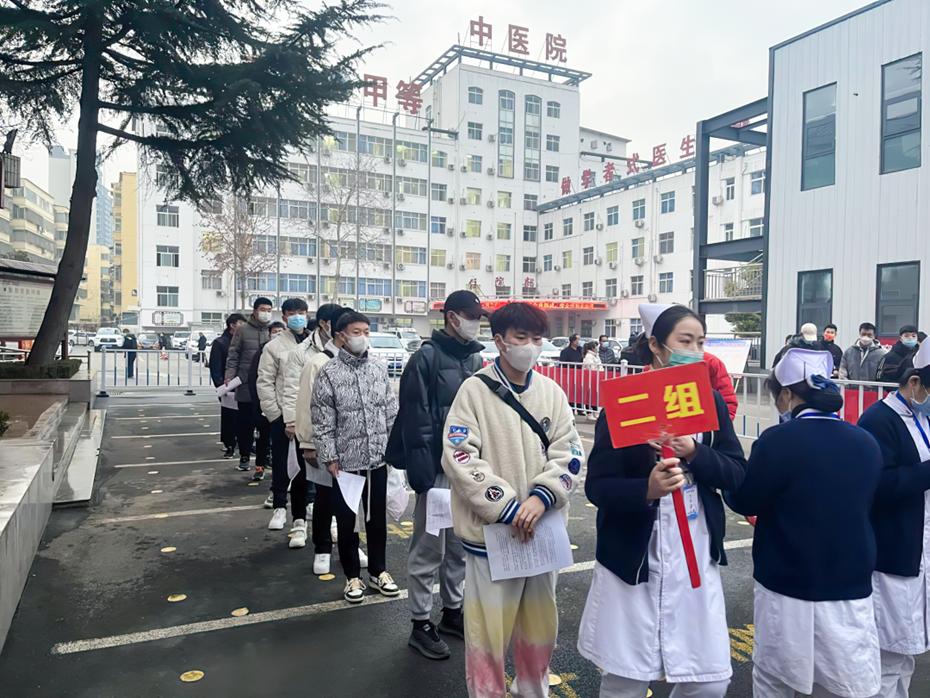 的127名大学生怀着对军旅生活的向往,来到新安县中医院参加征兵体检,接受祖国的挑选。