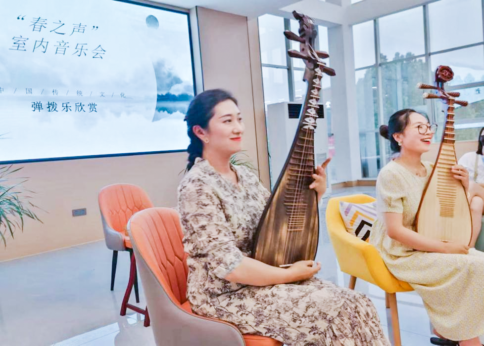 任双对弹拨乐器琵琶进行了详细介绍,并运用现代琵琶演奏指法技巧,以一曲《送我一枝玫瑰花》将现场聆听者带进了浓郁的西域风情之中。