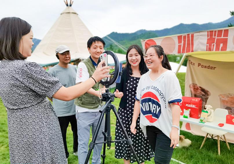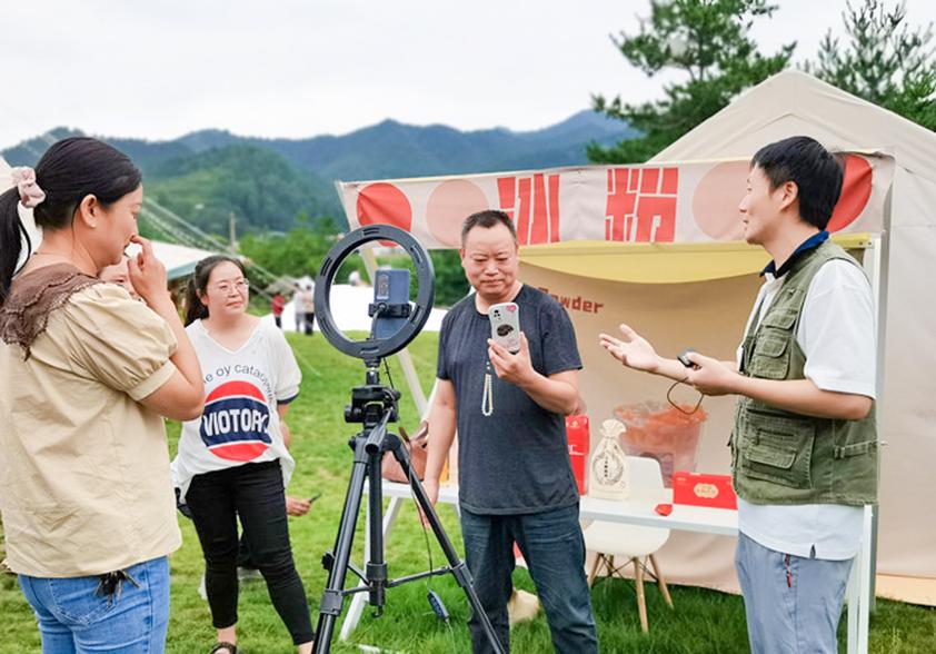 在三川镇,镇政府各相关部门及驻村书记、村干部等近40名学员参加了培训。讲师团骨干教师王鸿翔等专业技能讲师将课堂开在了田间地头,采用“理论+实操”的教学方式,帮助参训学员掌握账号运营、短视频拍摄及剪辑、直播带货等技能。