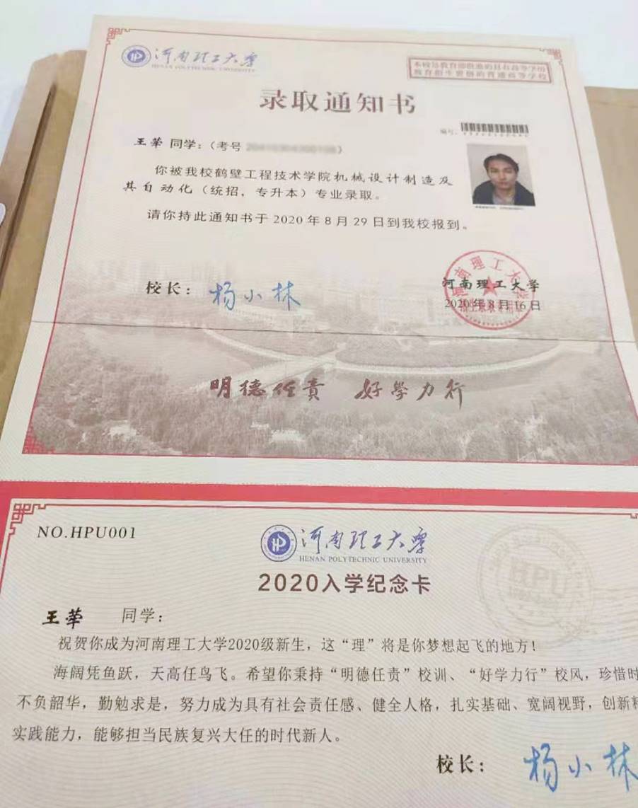 想改变命运,就要及早制定明确的目标并为之努力。王荦始终记得刚入学时老师的教诲,三年后,他尝到了甜头——如愿考上河南理工大学。时至今日,他依旧觉得,升本成功那年是他的重生之年,因为那是一种他对自己的重新认知。在成就感的鼓舞下,他猛然觉得自己其实没有那么糟,很多事情通过努力其实也可以做到。