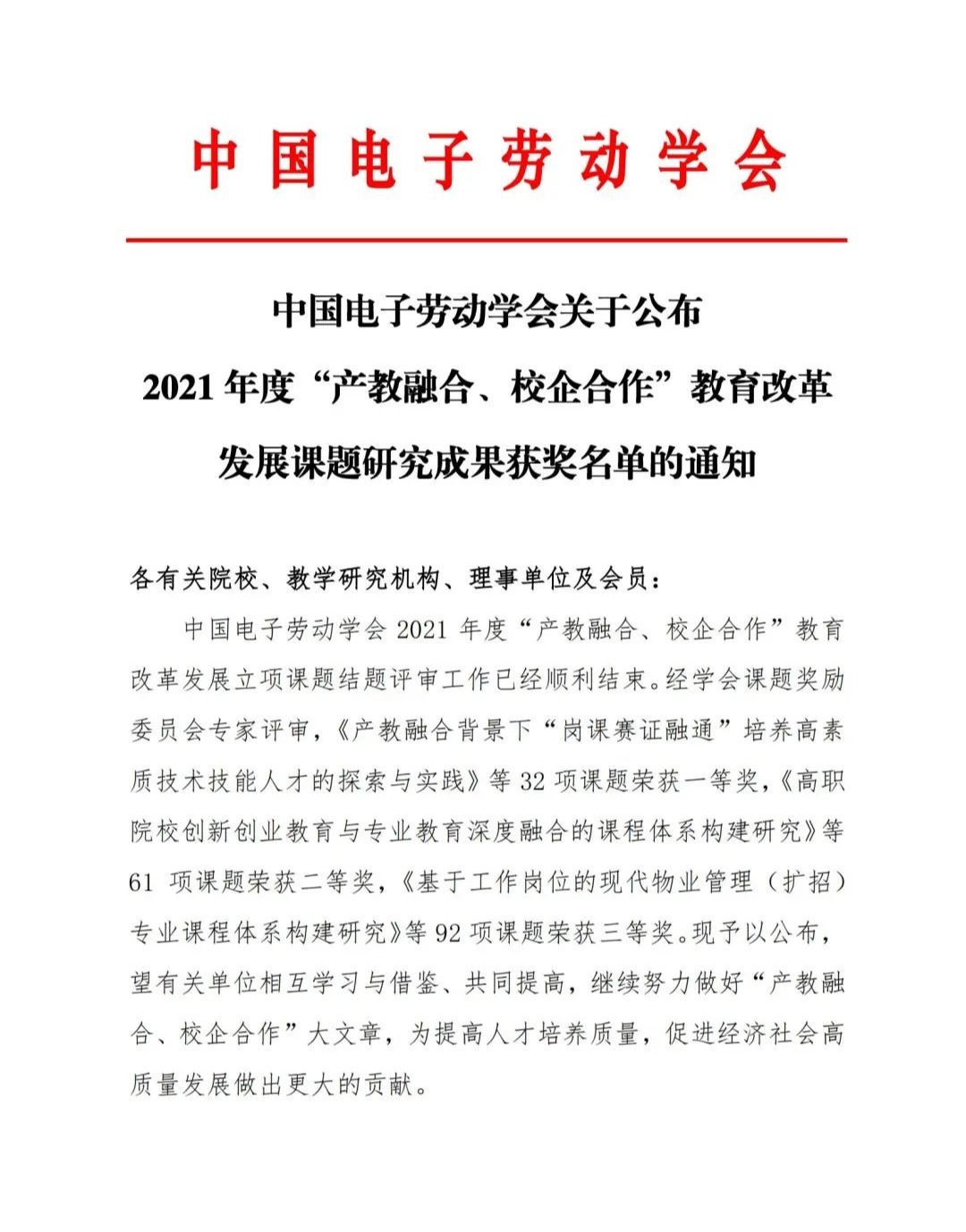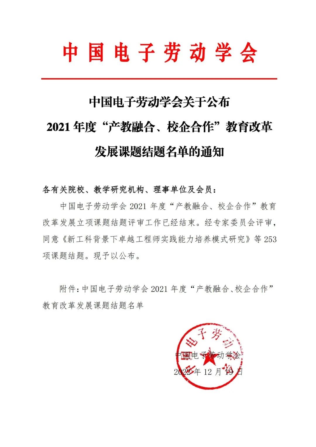 近日,中国电子劳动学会公布《2021年度“产教融合、校企合作”教育改革发展课题结题名单的通知》及《2021年度“产教融合、校企合作”教育改革发展课题研究成果获奖名单的通知》,海立方娱乐城