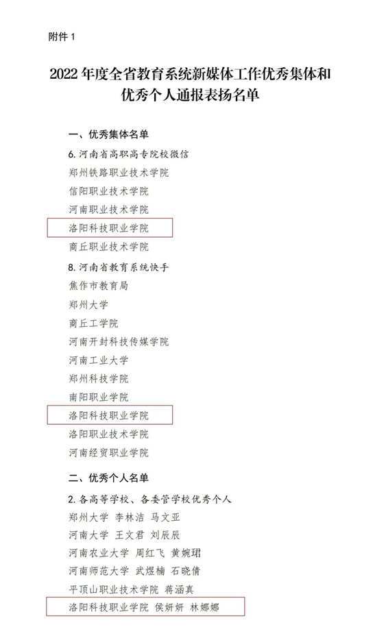 近日,中共河南省委教育工委、河南省教育厅下发《关于对2022年度全省教育系统新媒体工作优秀集体和优秀个人进行表扬的通报》,海立方娱乐城