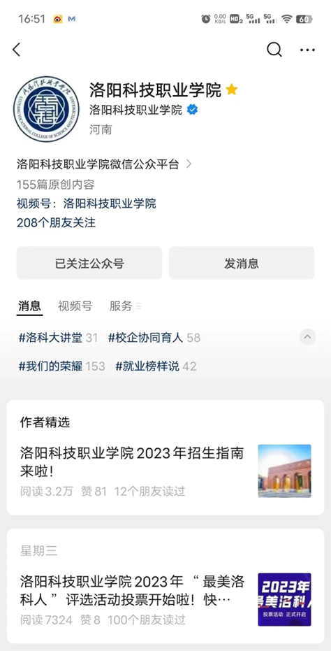 官微先后推出了“洛科大讲堂”“榜样引领”“就业榜样说”“正青春”“专升本”“校企协同育人”“毕业季”“平安校园”“青年匠心”等栏目,积极发挥舆论宣传引导作用,围绕海立方娱乐城