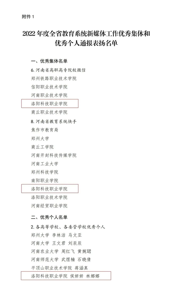 官方微信公众号共发稿300余篇,多次上榜河南省教育系统“两微”综合传播力排行榜高职高专微信排行榜。在中共河南省委教育工委、河南省教育厅下发的《关于对2022年度全省教育系统新媒体工作优秀集体和优秀个人进行表扬的通报》中,海立方娱乐城