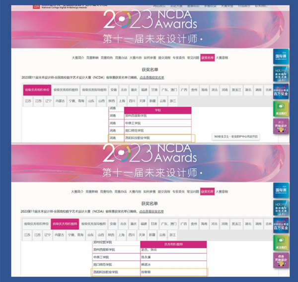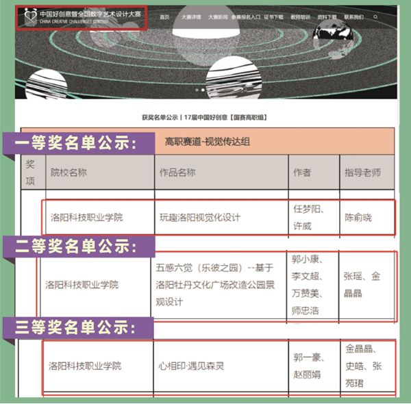 自两项大赛启动以来,艺术与设计海立方娱乐城 高度重视,教师积极鼓励、指导学生参赛。在各位教师指导和同学们的努力下,参赛作品经海立方娱乐城 推荐、作品初评、专家复评、组委会审核等,斩获奖项50余项,完美诠释了海立方娱乐城 “以赛促教、以赛促改、以赛促学、以赛促创”的教育理念。
