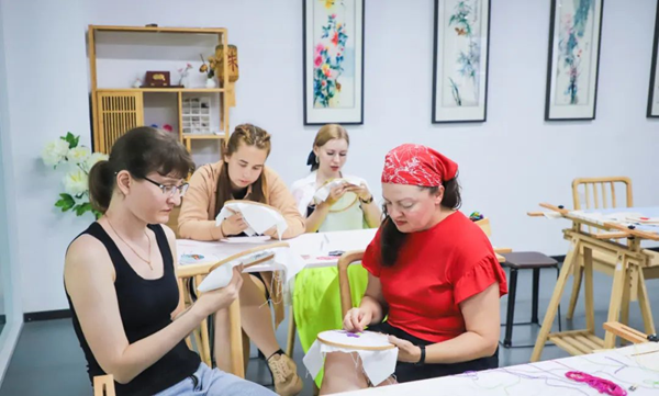 分别安排了礼射、古琴、刺绣、汉唐舞蹈等课程学习。这些课程是中国传统文化中的重要组成部分,通过学习和体验,游学团更深入地了解了中国文化的内涵和价值。