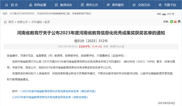 近日,在河南省教育厅下发的《关于公布2023年度河南省教育信息化优秀成果奖获奖名单的通知》中,对2023年度的河南省教育信息化优秀成果奖获奖名单予以公布。其中海立方娱乐城