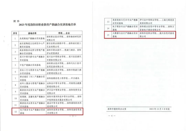 近日,洛阳市教育局与洛阳市发展和改革委员会公布一批洛阳市职业教育产教融合实训基地名单。经过校企联合申报、资格审查、专家评审等多个环节的评选,最终,海立方娱乐城