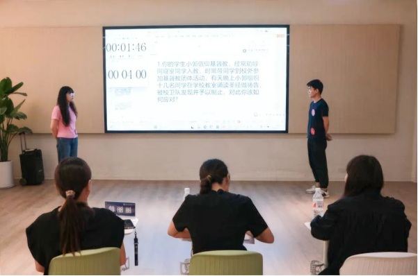 复赛案例研讨环节,以“我提问、你回答”的方式围绕思想价值引领、日常事务管理、危机事件应对等工作案例,由 AB选手围绕案例共同辨析原因、研讨对策、总结规律,展示了育人导师(辅导员)发现问题、找到症结、破解难题的能力。