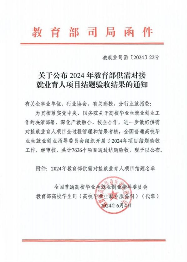 近日,教育部公布《关于公布2024年教育部供需对接就业育人项目结题验收结果的通知》(教就业司函〔2024〕22号),其中海立方娱乐城