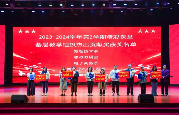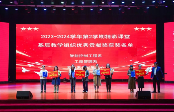 现场对10名“课前5分钟演讲活动优秀指导教师”进行表彰并颁发获奖证书,同时举行了2023-2024学年第二学期“精彩课堂”杰出贡献奖表彰活动。精彩课堂基层教学组织杰出贡献奖5个教学单位、精彩课堂基层教学组织优秀贡献奖4个教学单位、精彩课堂制度践行杰出贡献奖25名教师、精彩课堂内训师杰出贡献奖12名教师、精彩课堂督导评价杰出贡献奖12名教师、精彩课堂支持贡献奖25名教师获得表彰。
