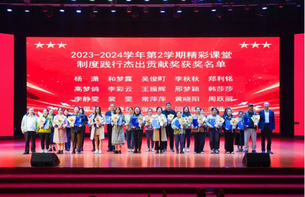 关于表彰2023-2024学年第2学期精彩课堂“杰出贡献奖”获奖团队及个人的决定》,同时号召受表彰的同志发挥榜样引领作用,全体教师立足教学工作,提升教学能力和水平,提升学生学习体验、成效及获得感,持续提升精彩课堂教与学质量,让课堂变得更加精彩。