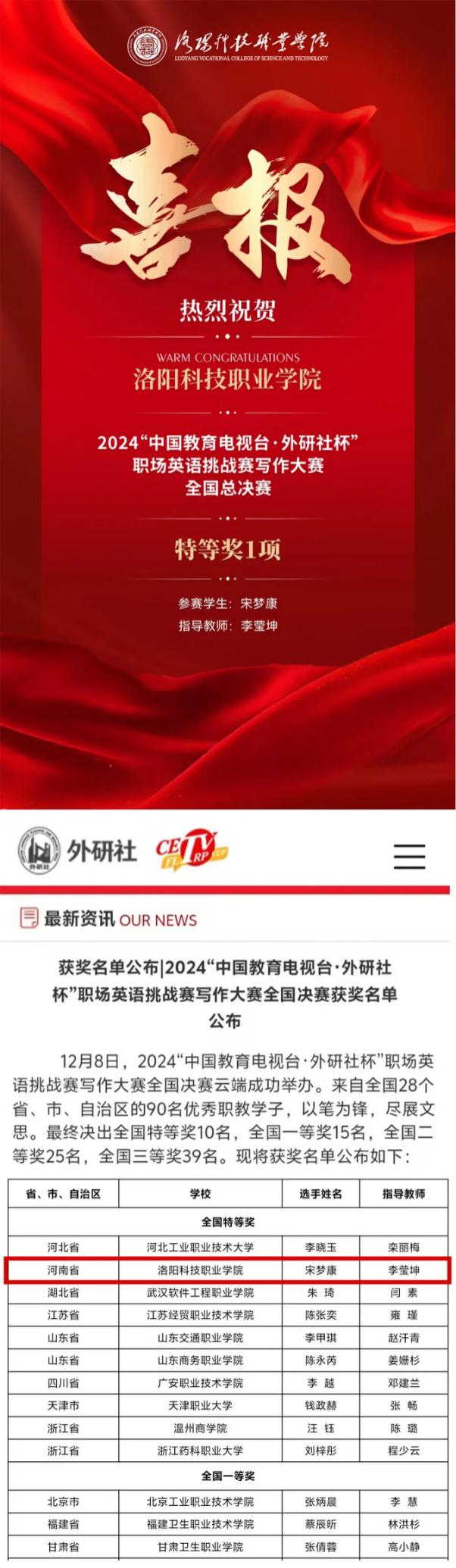 )通过全面而深入的英语教学改革,丰富多样的教学方法和实践活动,旨在培养具有宽广知识视野、扎实语言基础和良好人文素养的复合型人才。回顾备赛历程,每一次改稿、每一个细节都见证了学生对英语的热爱和对卓越的追求。未来,愿洛科学子“自强不息怀壮志以长行,厚德载物携梦想而凌云”,在更广袤舞台上,不断超越自我,再创佳绩。