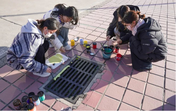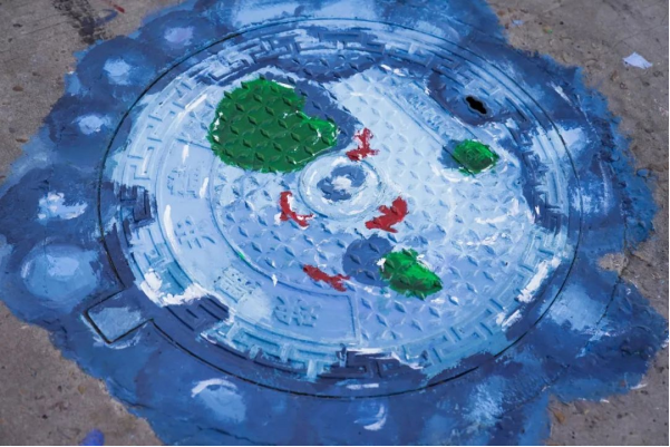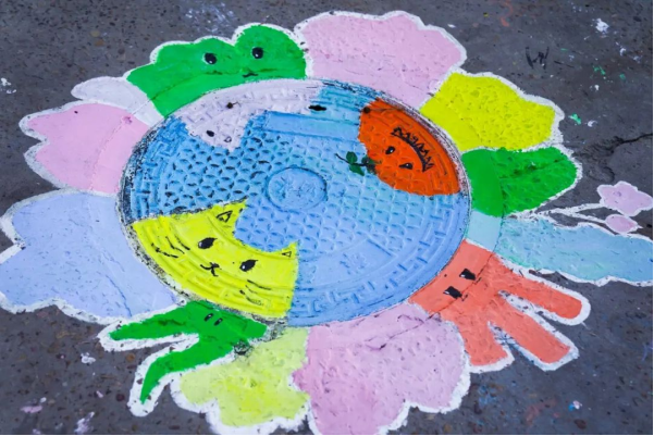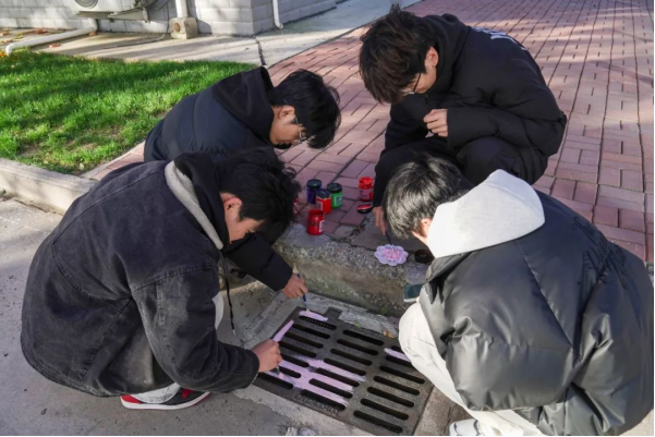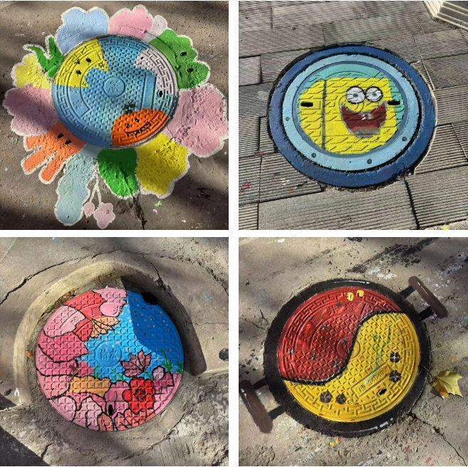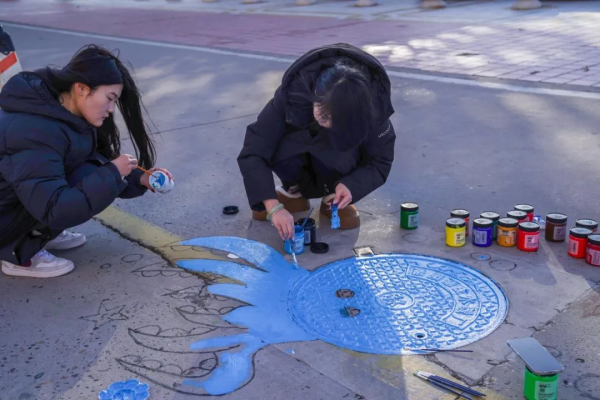 经过我们的创作,原本不起眼的井盖被赋予了斑斓色彩与勃勃生机,过往同学纷纷驻足拍照,这样的课堂体验既充满趣味,又极具成就感,我觉得特别有趣与难忘。