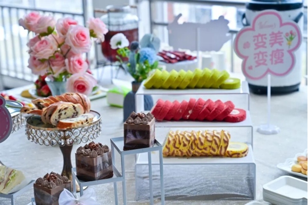 茶歇区的蛋糕水果与各式茶点的混搭,恰似教育者刚柔并济的注脚,为各位忙碌在讲台和办公室的女教职工们,带来一分温馨惬意,让大家放松身心,感受生活的美好。