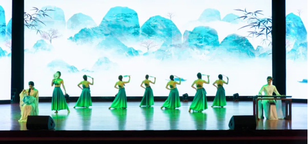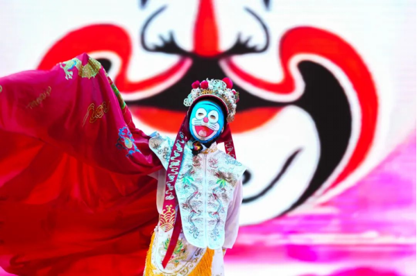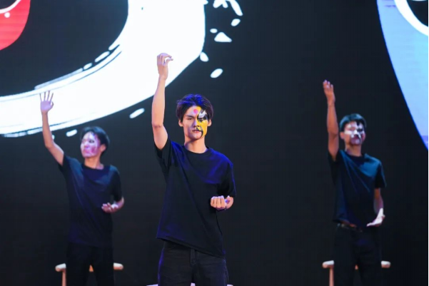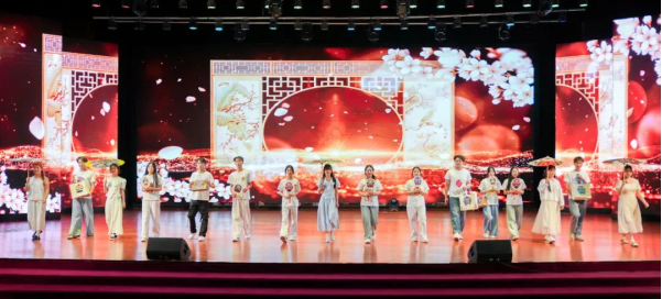 舞台上,非遗艺术与青春创意交相辉映,奏响文化传承的时代强音。“红忠紫孝、黑正白奸”的脸谱彩绘与刚健武术结合,让静态脸谱化作鲜活的文化符号;银针穿梭,彩线翻飞,绣娘指尖流淌的不仅是织物经纬,更是跨越时空的匠心传承,与翩跹舞者的灵动身影交织,勾勒出非遗技艺生生不息的传承脉络;文创走秀环节,青年学子用现代设计语言解构传统元素,赋予非遗文化青春活力;川剧变脸以瞬息万变的绝技,展现中华优秀传统文化的无穷魅力。