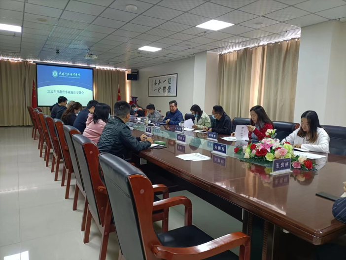 在至善大厦9楼第一会议室召开2022年教育事业统计专题会。会议由副校长牛耀堂主持,各相关部门负责人及数据填报人员参会。