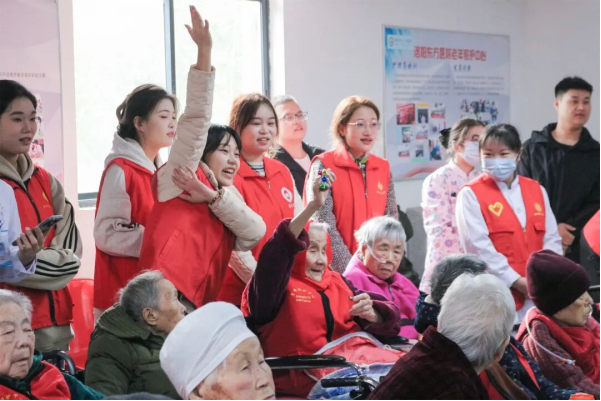 慈涧书院组织学生志愿者前往洛阳市东方医院老年照护中心,与洛阳市义工联合会共同开展“九九重阳日·暖暖敬老情”主题志愿服务活动。