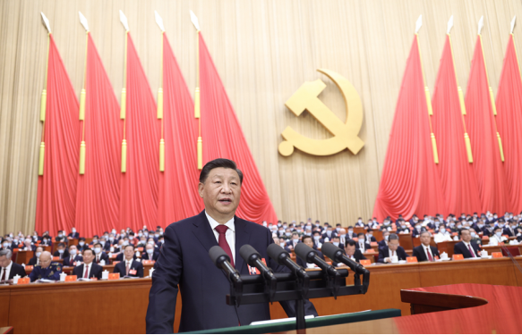 习近平代表第十九届中央委员会向大会作了题为《高举中国特色社会主义伟大旗帜为全面建设社会主义现代化国家而团结奋斗》的报告。习近平指出,中国共产党第二十次全国代表大会,是在全党全国各族人民迈上全面建设社会主义现代化国家新征程、向第二个百年奋斗目标进军的关键时刻召开的一次十分重要的大会。大会的主题是:高举中国特色社会主义伟大旗帜,全面贯彻新时代中国特色社会主义思想,弘扬伟大建党精神,自信自强、守正创新,踔厉奋发、勇毅前行,为全面建设社会主义现代化国家、全面推进中华民族伟大复兴而团结奋斗。