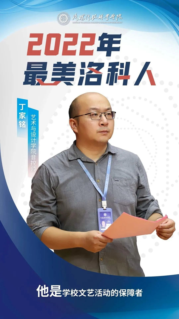 我们看到的是各项活动进行得有条不紊,看不到的是幕后丁家铭的奔波劳碌。如果将每场活动的顺利举行比作一台机器的正常运转,那丁家铭就是保证这台机器顺利运转中的一颗坚韧耐磨的“螺丝钉”。在工作岗位上,他始终追求精益求精;他不为掌声,却承担着一份责任与担当;他未曾光芒万丈,但却是洛科人心里的“幕后英雄”。