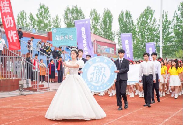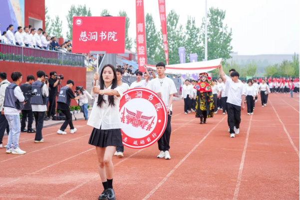 入场式上,以校旗为引领,教师及运动员们迈着铿锵有力的步伐,整齐划一地走过主席台。八大书院方阵独具匠心,结合各自书院的特色和亮点,巧妙设计方阵造型,精心编排入场表演,展现出洛科学子奋发向上、积极进取的精神面貌。