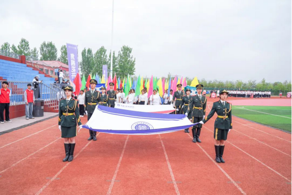 伴随着巨幅校旗在操场上的庄重传递,由刘丽彬校长宣布本届运动会正式开幕。
