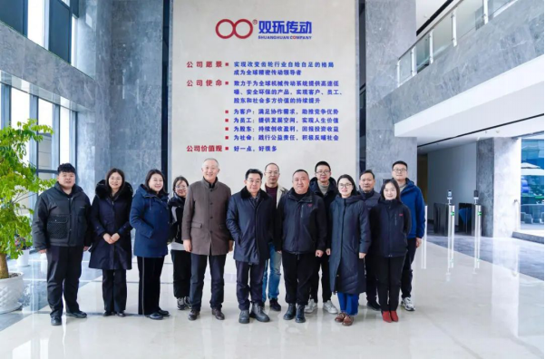 在浙江双环传动机械股份有限公司,公司相关负责人介绍了公司的基本情况,随后刘丽彬一行对浙江双环传动机械股份有限公司进行实地走访参观,详细了解了公司的业务板块、创新能力及创新成果,并就校企合作事宜与双环传动相关负责人进行了交流洽谈,希望在人才协同培养、项目推进、学生实习转化就业等方向进行多维度合作。