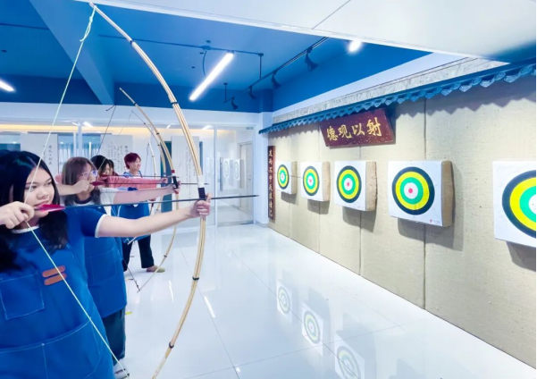 特别注重传统技艺的传承与弘扬。留学生们体验了汉唐舞蹈的翩跹柔美,领略了射箭技艺的精准卓越与礼仪之风的庄重典雅,更沉浸于八段锦的养生智慧之中,感受身心和谐共融的至高境界。此次技艺传承的研学活动,不仅是对中华传统技艺的一次生动展示与弘扬,更是对留学生心灵深处的一次深刻触动与启迪,让她们在体验中感悟,在感悟中成长,成为中华传统文化的新时代传播者。