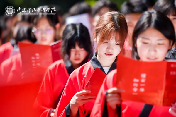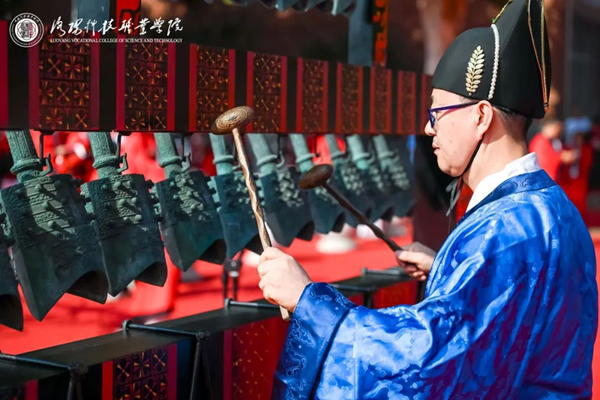 钟磬合奏,相映生辉,华夏文明,薪火相传。时而清脆、时而雄浑的金石之声共同奏响传统与时代交融的美妙乐曲。洛科师生万人齐诵《洛科赋》,“西襟函谷,东枕神都。绾依丝路,蟠踞名区。结楼阁于神阙,嵌胶黉之明珠……”铿锵有力、抑扬顿挫的诵读声在至善大厦上空久久回荡。